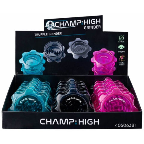 The Champ High Truffle Grinder is a novelty grinder designed with a distinctive truffle-inspired shape that adds playful character to everyday grinding accessories. Its compact, easy-to-handle format makes it suitable for regular use while the unique design creates strong visual interest at retail.